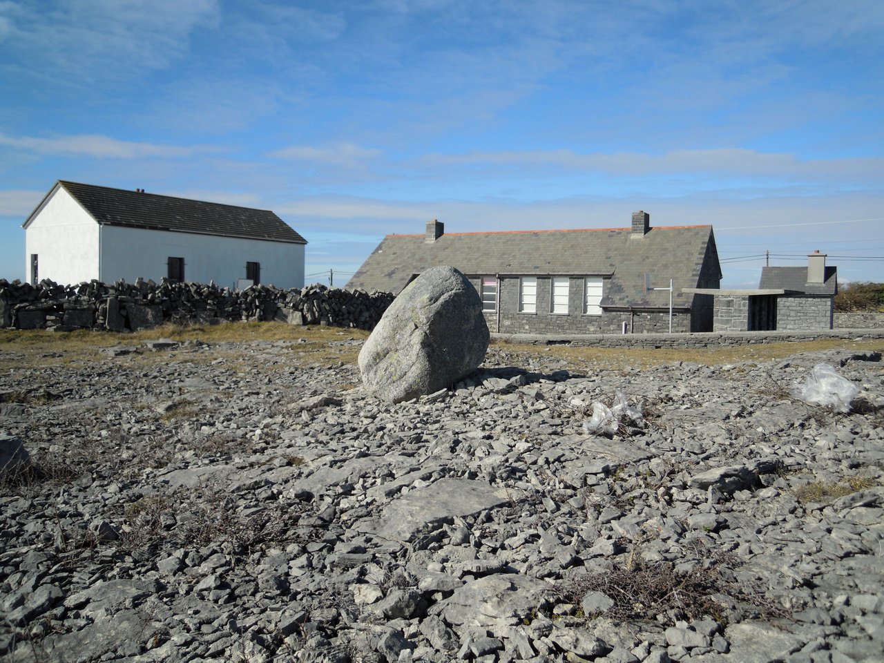 Arainn - Inishmore - "Glacial Erratic" this granite boulder was carried and dumped here on the limstone of Inishmore at the end of the last ice age (behind the school at Fearann an Choirce)
