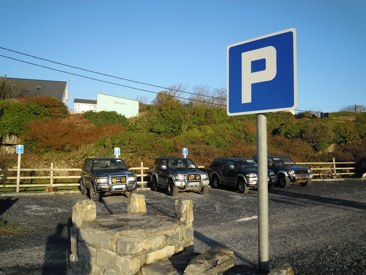 Arainn - Inishmore - Kilronan, SUVs parked in a row at the harbour car park