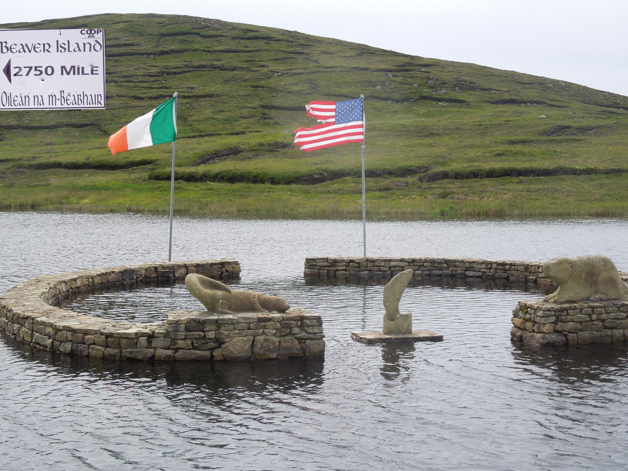 Árainn Mhóir - Beaver Island memorical at Loch Thoir - In 1851 a family of O'Donnells emigrated to Beaver Island, Michigan after being evicted from their Arranmore home. A number of Arranmore familes soon followed and by 1880 there were 128 Gallaghers, 114 O'Donnells and many Boyles and Wards living there.