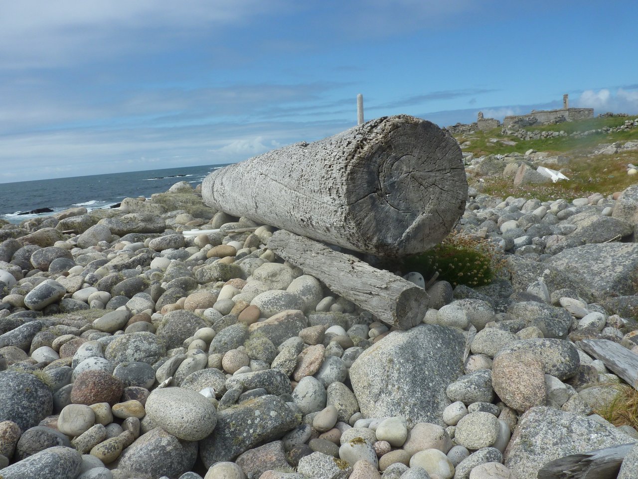 Inishirrer - a large log, one of many pieces of flotsam washed ashore on the island.