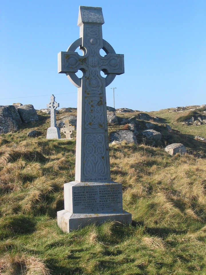 Omey - On the night of 27 October 1927 16 fishermen from the townland of Rossadillisk on the mainland near Cleggan were drowned in a storm. 10 Inishkea men out fishing in currachs drowned in the same storm. Read an account of the Inishkea disaster on the Inishkea page,
